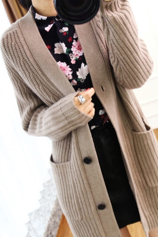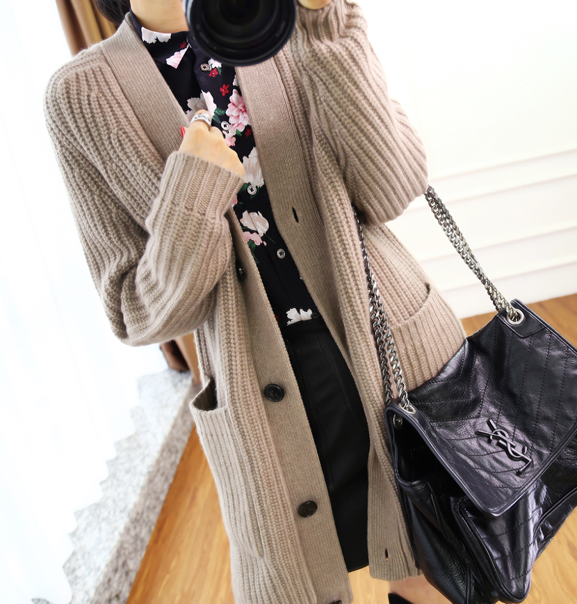 开衫毛衣外套女2020春秋季新款中长款羊毛衫宽松显瘦羊绒针织上衣
