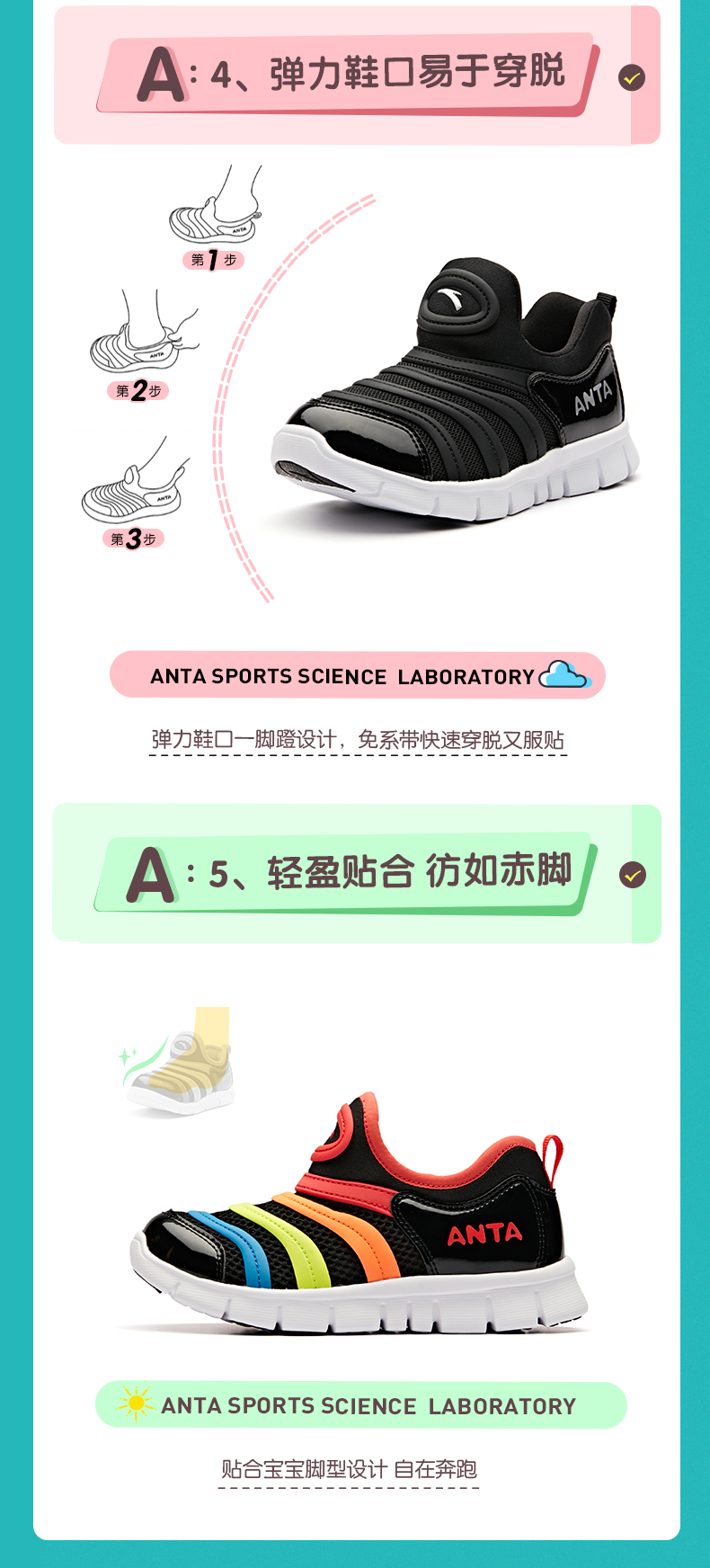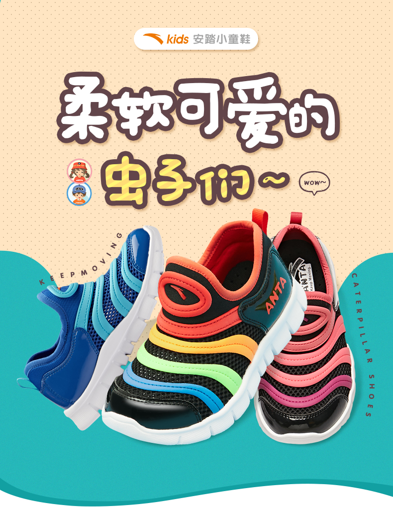 安踏儿童毛毛虫童鞋夏秋季男童鞋子女小童鞋跑鞋透气网鞋运动鞋子