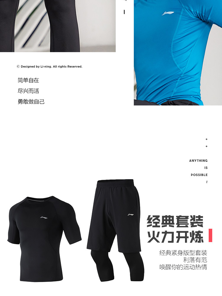 李宁三合一男士训练系列上衣紧身裤子春季季梭织运动服