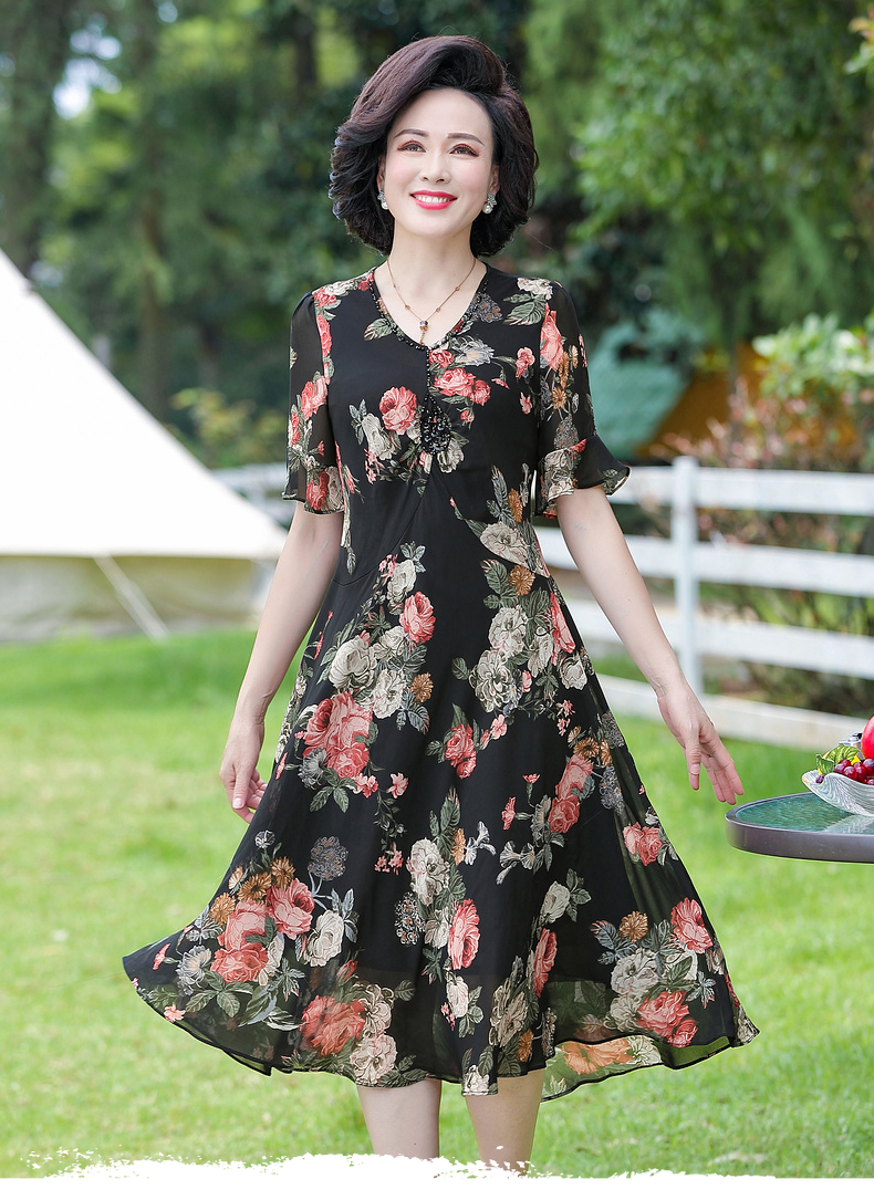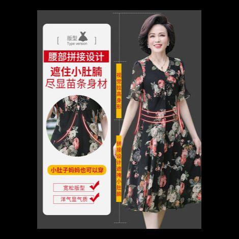 中年妈妈连衣裙高贵洋气2020新款中老年夏装40岁50时尚雪纺女裙子