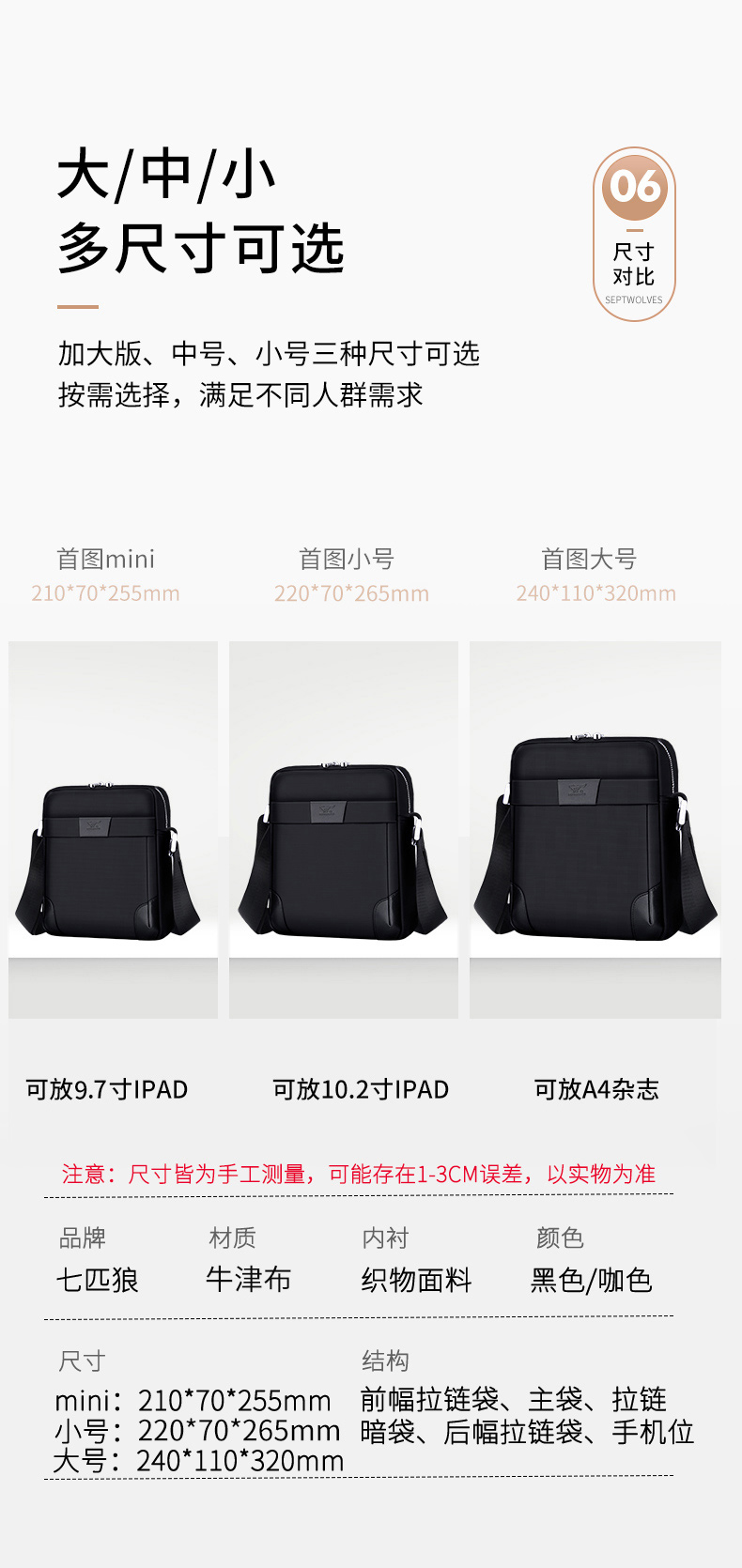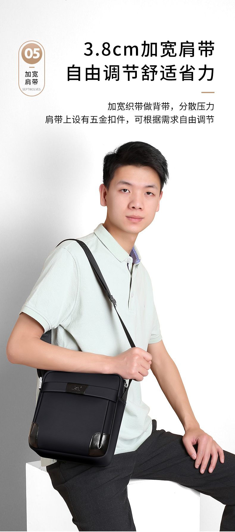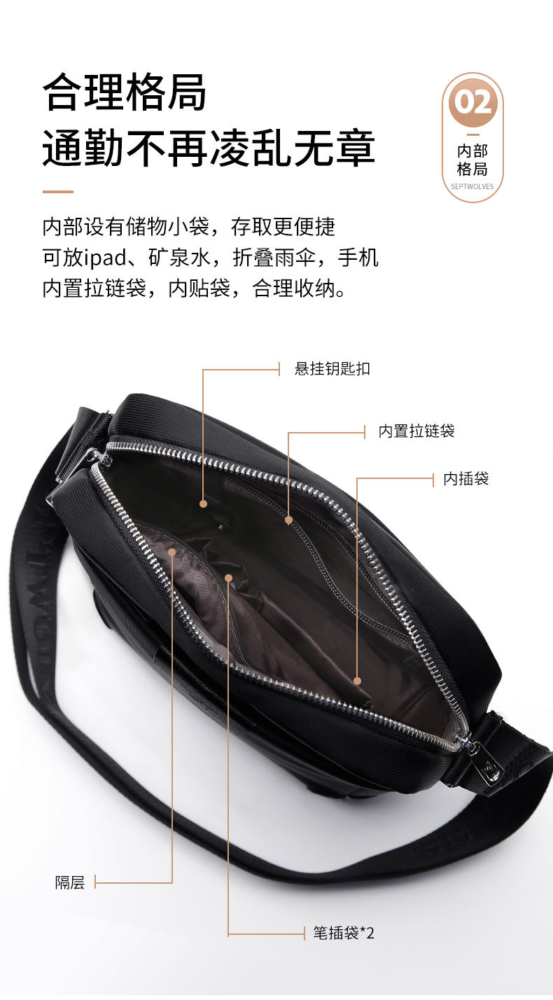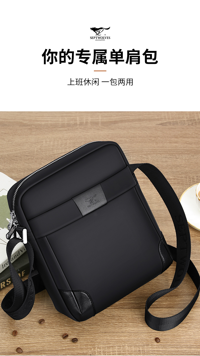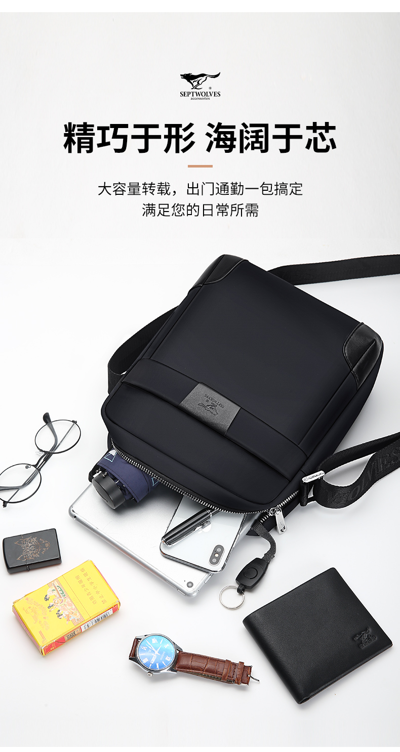 七匹狼单肩包男休闲多功能背包斜挎包牛津布男士包包帆布男包商务