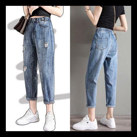 破洞牛仔裤女夏2020新款薄款高腰韩